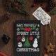 Este maravilhosamente assustador cartão de Natal oferece um estilo de gótico girando sobre os tradicionais motivos natalinos com flocos de neve e formas estelares formadas por ossos de esqueleto brancos, Enfeites de natal em forma de crânio e groselhas ocas, coroas pretas e árvores de Natal e ornamentos e bonecos de neve. Minhas ilustrações em vermelho, branco e verde são colocadas sobre um fundo preto. Meus gráficos acompanham o slogan TENHA UM PEQUENO NATAL SPOOKY, soletrado em um crânio branco angustiado e letras em forma de osso na frente desta placa. O dentro da placa está pronto para ser personalizado com sua própria saudação.