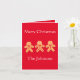 Este é um cartão de Natal personalizado com três gengibres bonitinhos em pé no fundo vermelho. A parte traseira da placa apresenta um padrão surpreendente de gengibre com flocos de neve Você pode personalizar esta design clicando no botão personalizar. Verifique minha coleção para produtos natalícios mais bonitos