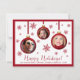 Este cartão de feriado bonito apresenta um design divertido onde você pode carregar suas fotos em rublos ou Enfeites de natal vermelhos. Há espaço para 3 fotos. A saudação diz Feliz Feriados. O fundo é branco com flocos de neve vermelhos. A parte traseira da placa sacudir as cores e é vermelha com flocos de neve brancos. Maneira única e caprichosa de enviar as saudações de Season.