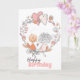 Uma bela ilustração de um menino e uma menina bonitinhos sentados lado a lado, de mãos dadas, é enquadrada por uma coroa floral branca cheia de flores e corações cor-de-rosa suave, laranja e cinzas. O menino está vestindo uma tampa laranja e cinza as calças que a garota está vestindo um vestido de verão. As palavras, feliz aniversário (que pode ser mudado para aniversário ou Dia de os namorados) aparecem abaixo delas e um belo poema, que é adequado para ocasiões românticas, é encontrado no dentro. Personalize a mensagem para atender às suas necessidades.