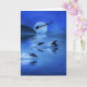 Um cartão de Natal de Feliz Feriado divertido com um tema de praia costeira! Golfinhos saltando da água como Papais noeis e Sleigh voam todos iluminados por uma grande lua de cheio. Um cartão de Natal super divertido, náutico, costeiro, de praia e vida marinha!