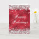 Crie seus próprios cartões de Natal Feliz Feriados elegantes. Adicione texto ou fotos ao interior para criar seu próprio cartão de saudação exclusivo. Brilhante prateado brilhante e gráficos de arte digital com efeito de folha de vidro vermelho brilhante e fino. Todos os efeitos brilhantes, vívidos e brilhantes neste design de menina moderno são criados com gráficos digitais que impressão gostam de uma foto.