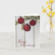 Um cartão elegantemente desenhado de ornamentos ruidosos e vermelhos decorando uma árvore com fundo branco. Artesanato original pintado à mão em aquarela.
