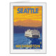 Ferry and Mountain - Seattle, Washington - Viagens vintage de Poster foi criada em 2007. Esta imagem mostra cenas de Seattle, WA.