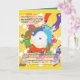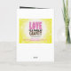 Imagens e texto, com uma mensagem sobre o amor e uma física engraçadas, positivas! Há umas imagens na parte dianteira, parte dianteira para dentro e para trás. A mensagem no interior da parte traseira lê: "Desejando o ame, alegria e gravidade!"