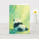 Um panda feliz senta-se numa floresta exuberante de bambu, segurando suavemente um ramo de bambu enquanto se banha em luz suave e dourada. Pequenas flores brancas florescem ao redor da cena pacífica, criando um momento tranquilo e emocionante. A expressão de contentamento do panda e a atmosfera sonhadora tornam este um design perfeito para amantes da natureza e entusiastas de animais.
