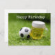 Festa de Futebol com bola de futebol e cartão de aniversário de cerveja