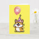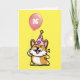 Um cartão de aniversário de 16 anos engraçado para cadelas de corgi que você pode personalizar facilmente o balão com a idade necessária. Este cartão de aniversário engraçado de corgi faria um cartão de excelente para amantes de corgi. Apresentando um cão-corgi engraçado vestindo um chapéu de festa rosa e roxo e segurando um balão rosa contra um fundo amarelo na frente do cartão de aniversário.