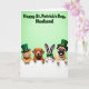 Designed with a vertical layout, this St. Patrick’s Day card features four young animals lined up along the bottom, leaning forward as if sharing a friendly secret with you. Behind them, a soft green gradient background sets a fresh, festive scene 💚. A crisp white horizontal divider runs across the lower portion, and each animal rests its front paws on the edge, adding a cozy, close-up feel. The group includes an orange tabby kitten, a warm brown puppy, a black-and-white pup, and a fawn-colored pug, all with bright eyes and gentle, affectionate expressions. Tiny green top hats with small golden buckle details sit on the kitten and the pug, while the black-and-white pup wears a matching green bow tie ☘️. Above the divider, dark green celebration text is placed near the top against the green background, easy to spot without overpowering the art. Soft, diffused lighting brings out the fur textures, from the kitten’s stripes to the dogs’ smooth coats, and the white divider stays sharp and bright across the front.
