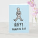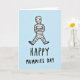 This design shows a cute, bandaged cartoon figure inspired by an ancient wrapped character, set against a calm light blue background. The figure stands in the center with arms crossed over its chest and legs spread wide, like it’s mid-dance for someone it adores ❤️. Its face is simple and friendly, with tiny black dot eyes and a small line mouth peeking through the wrapping, giving it an affectionate, approachable look. The white bandages are outlined in black, creating a strong contrast that makes the character pop against the soft blue setting. Near the bottom, the message “HAPPY MUMMIES DAY” appears in hand-drawn black letters, centered beneath the figure. The lettering looks slightly rough and crayon-like, adding a cozy, informal touch that feels like a note made for a close friend or loved one 🌼. The background stays uncluttered, with the light blue field surrounding the dancing figure and the black text below.