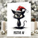 Procurando um cartão de Natal com um toque de humor? Conheça o cartão de Natal de gato preto não tocado. Este cartões de natal apresenta um gato negro fazendo um chapéu de Papai Noel, entregando uma dose clássica de alegria de Natal com a atitude certa. Abaixo do gato, as palavras "Festivo AF" assumem um novo nível de ironia festiva. Perfeito para amantes de gatos, para aqueles que desfrutam de um pouco de bunda de férias, ou para qualquer um que aprecie o humor com a sua alegria de Natal. Este cartão permite-lhe enviar desejos de férias com um piscar os olhos lúdico. É perfeito para fazer que alguém sorria!