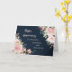 Feliz cartão de aniversário de casamento para a filha e o filho na lei com elegantes flores cor-de-água cor-de-rosa e fundo azul-marinho e verso sincero.