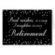 Felicite sua filha por sua aposentadoria com este cartão elegante. Os pontos de brilho digital com aparência prateada são impressionantes no fundo preto.