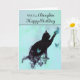 Celebre o Aniversário da Sua Filha enviando-lhe este cartão de saudação bonito com esta sábia design de silhueta de um gato preto brincando com borboletas num fundo verde pastel. Um verso de cartão interno está incluído para sua utilização ou você pode personalizá-lo com a adição de seus próprios sentimentos especiais.. ©SmudgeArt - Madeline M Allen