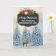 Feliz Natal para a filha num cartão de direito com o padrão rústico do quadro-negro do país e a cena da floresta com cor de neve com veados e aves.
