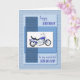 Um ciclo de motor azul sobre um fundo azul-abstrato. A frente diz "Parabéns ao meu genial filho". Um cartão de excelente para um genro que é um entusiasta da bicicleta motora.