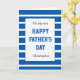 Este é um cartão de Dia de os pais azul personalizado para o filho, que pode ser personalizado na frente com seu nome. A dentro desta moderna placa Dia de os pais azul Feliz lê uma mensagem de Dia de os pais, que você pode facilmente personalizar se quiser. As costas têm um lugar para você se personalizar com o ano. Isso faria uma manutenção única para ele.