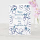 Feliz cartão de aniversário de casamento para filho e filha em direito com flores azuis modernas e design de espiral, e verso sincero.