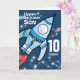 10ª carta de aniversário de foguetes do espaço, personalize com a foto do seu aniversariante para que ele possa realmente ter uma explosão! Este cartão diz "Feliz Aniversário Filho 10 hoje" na frente e "Você está fora deste mundo, tenha uma explosão!" dentro. Ou personalizar com suas próprias palavras e idade. Cartão divertido projetado exclusivamente por Sarah Trett.