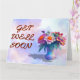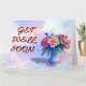 O cartão apresenta um buquê perfeitamente ilustrado de flores frescas e vibrantes dispostas em um vaso de vidro elegante. O buquê consiste em flores alegres simbolizando o calor, o amor e a cura.