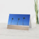Texto de dentro: Muito em breve Linda cena da praia com palmeiras na frente.
