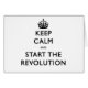 Hora de uma revolução, não diria? Um slogan divertido e oportuno "Fique Calmo e" que diz tudo.