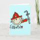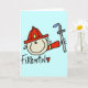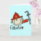 Se a sua profissão é a de bombeiro, você vai adorar esses cartões coloridos de bombeiro com um homem que se mete em corpo de bombeiro e texto que diz "bombeiro" em fundo azul.