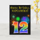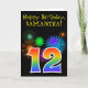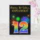 Cartão Fireworks divertido + Rainbow Pattern "12" Anivers