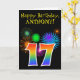 Cartão Fireworks divertido + Rainbow Pattern "17" Anivers