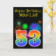 Cartão Fireworks divertido + Rainbow Pattern "53" Anivers