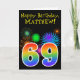 Cartão Fireworks divertido + Rainbow Pattern "69" Anivers