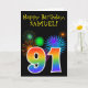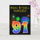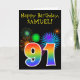 Cartão Fireworks divertido + Rainbow Pattern "91" Anivers