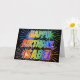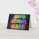This multicolored and fun birthday greeting card design features the message "HAPPY BIRTHDAY," and the common first name "ISABEL" with the letters having a colorful rainbow spectrum like gradient coloring pattern. The background of the front also features a colorful pattern inspired by the appearance of bursting fireworks. The inside features a personalized greeting message, or could perhaps be cleared and left blank if a message is to be written by hand instead. A greeting card like this could be a fun way to celebrate the birthday of somebody named Isabel. [~Z0000350]