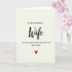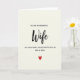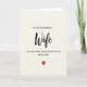 This greeting card keeps things simple and heartfelt, with a soft cream background and mostly black lettering. At the top, it says “TO MY WONDERFUL” in small, neat block letters centered near the upper edge. In the middle, the word “Wife” is the main focus, written large in a black brush-style script that looks hand-drawn and full of feeling. Under that, the message “ON OUR FIRST VALENTINE’S DAY AS MR. & MRS.” appears in smaller, easy-to-read letters across the lower center. Near the bottom, there’s a single small red heart that stands out against the light background and ties the message to love ❤️. The overall look feels warm, calm, and personal, like a note meant just for her 💌🍫. Hope it helps you share sweet Valentine’s Day feelings with someone you love.