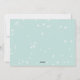 Cartões de Natal com flamingo e design de estrelas-do-mar. Estrelas giratórias cobrir o fundo de placas horizontais que são de cor azul-cinza-clara. O texto azul-marinho é fácil de personalizar em dois locais com uma saudação e uma mensagem, com assinatura. O flamingo cor-de-rosa veste uma coroa de flores de hibisco e folhas sagradas e se situa entre um dólar branco de areia e estrelas azuis do mar.
