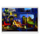 uma exposição dobro, pilhas de espelhos e luzes do nighttime