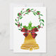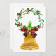Cartão plano de natal com imagem de um sino pendurado numa simples coroa