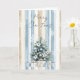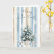 Cartão Flocos de neve florais de creme azul de árvore de
