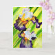 Linda pintura original de cor roxa, amarela e verde íris em flor. Cor brilhante vibrante. Arte fina de aquarela.