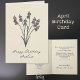Este cartão é para uma pessoa cujo aniversário é em abril. Ervas doces, estampadas de forma elegante, estão na frente do cartão juntamente com o nome do destinatário e uma saudação de Feliz Aniversário numa bela tipografia cursiva manuscrita. O olhar geral do cartão é rústico e elegante, e seria adequado para qualquer momento de aniversário. É adequado para um homem ou uma mulher, um amado ou um colega de trabalho, um pai ou um irmão. Você pode editar todas as palavras na frente e no dentro do cartão para torná-lo ainda mais pessoal. Se você gosta do estilo deste cartão, há uma versão para cada mês do calendário. A tipografia na dentro do cartão é rústica e parece escrita à mão, mas não confusa. A placa inteira tem uma camada visual sutil. Na dentro à esquerda, fala-se do mês de nascimento, da flor da nascença e de algumas palavras que falam ao simbolismo dessa flor em particular. Você pode excluir isso se preferir uma aparência mais minimalista. Faça uma lista de pessoas para as quais você gostaria de obter cartões, personalize-os todos de uma só vez e obtenha seus cartões comprados para o ano! Bonita, única, personalizada e mais barata que as cartas nos compras. Algo que você pode riscar na sua lista :)