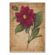 Arte safena de uma flor vermelha contra uma cor macia e bronca com uma letra antiga.