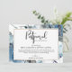 Teve que adiar seu evento? Sem problema, informe seus convidados com este Cartão de Adiamento de Casamento (ou qualquer outro evento) elegante. Linda mancha azul de aquarela com elegante pintado manualmente azul floral cobrindo seus detalhes de adiamento. Flores e folhagem em azul poeirento, azul marinho, branco, cinzas e tons verdes sábios. Graciosos detalhes da tipografia de Script escritos à mão. Capacidade de o utilizar para qualquer evento. Área para você adicionar sua própria mensagem. O cartão moderno está de volta com mancha azul de aquarela. Parte do nosso casamento e da coleção de eventos "Montanhas Azuis Russas".