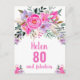 Cartão de aniversário Elegante de 80 com design floral cor-de-água rosa. Personalize com seu nome e texto.