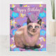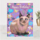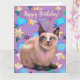 Pintura de um gato cinza prateado, flores ao fundo. Para todos os amantes de gatos, Feliz Aniversário!