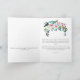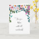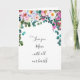 Cabeçalho floral com flores coloridas, incluindo muitas sombras de pinks e verdes a um azul púrpura claro. Cite a dentro esquerda e a mensagem de saudação dentro com um buquê floral semelhante no topo.