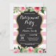 Cartão floral do convite de festas da aposentadoria. O partido de aposentadoria das mulheres convida. Flores florais cor-de-rosa da aguarela. Brilho Dourado. Listras cor-de-rosa e brancas. Para uma personalização mais adicional, clique por favor "personalizam-no" botão e usam-nos nossa ferramenta de design para alterar este modelo.