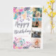 Um romântico seco e prensado, cor de água floral silvestre, 4 foto grade colage feliz aniversário com flores pintadas cor-de-rosa, lavanda, azul e laranja.