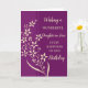 Cartão de aniversário para a filha em direito com flores roxas e amarelas modernas e versos pensativos.