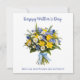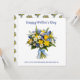 Um lindo cartão de felicitações para o Dia das Mães, ilustrado com um lindo buquê de flores da Primavera atado com uma fita azul. A saudação "Feliz Dia das Mães" aparece no topo em tipografia elegante. Personalize com o(s) seu(s) nome(s) na parte inferior do cartão, para um toque individual elegante. A parte traseira do cartão é estampada com pequenos buquês. Com charme botânico elegante, este cartão é ideal para os amantes de flores e da natureza.