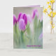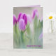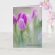 A frente desta carta elegante tem um close up de tulipas roxas com fundo desfocado e as palavras Happy Dia de as mães, e a dentro tem uma bela citação de Ruas. Therese of Lisieux: A obra-prima mais bonita do coração de Deus é o coração de uma mãe.